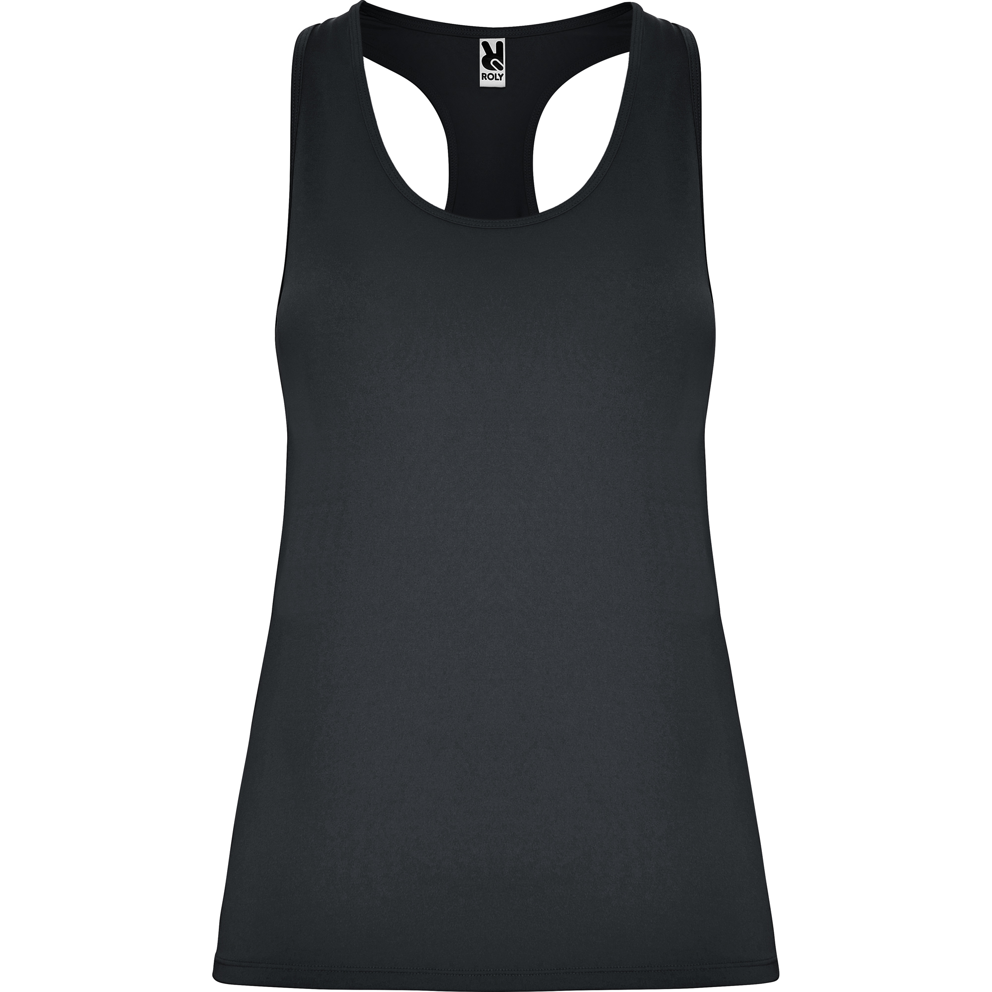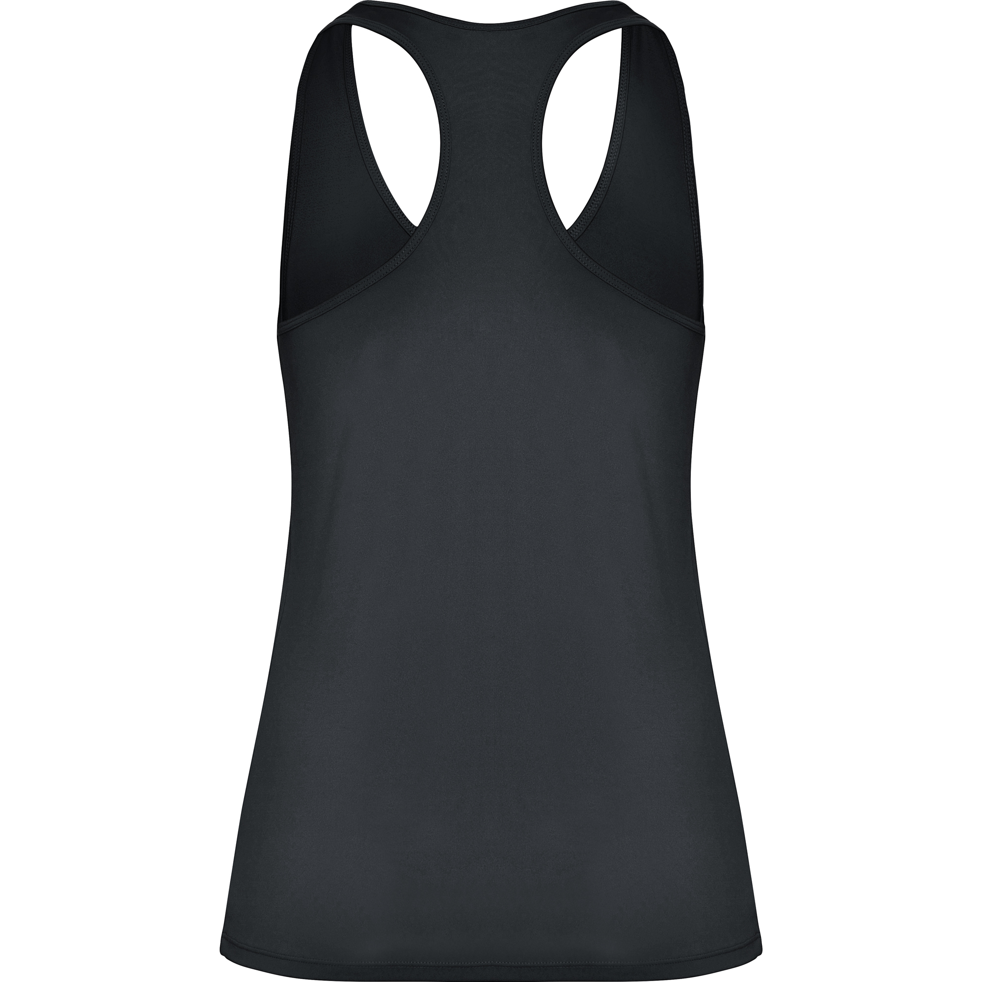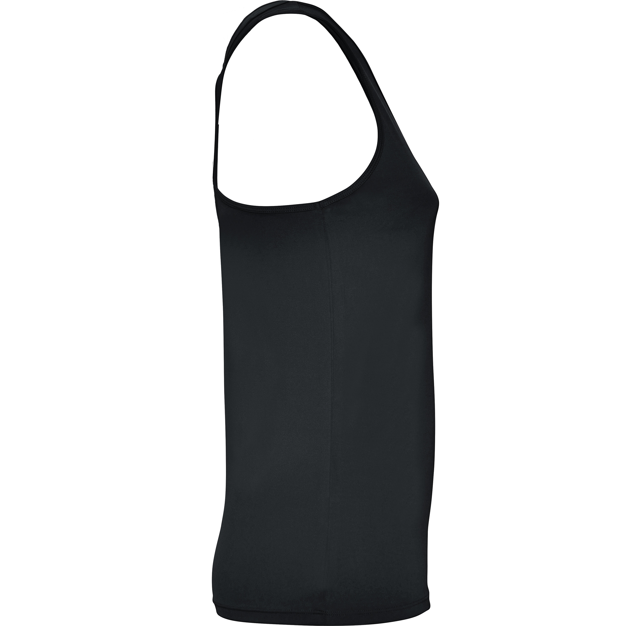 Camiseta técnica de tirantes entallada transpirable. Espalda nadadora con escote y sisas ribeteado. Tejido poliéster tacto algodón de secado fácil. Corte entallado.
