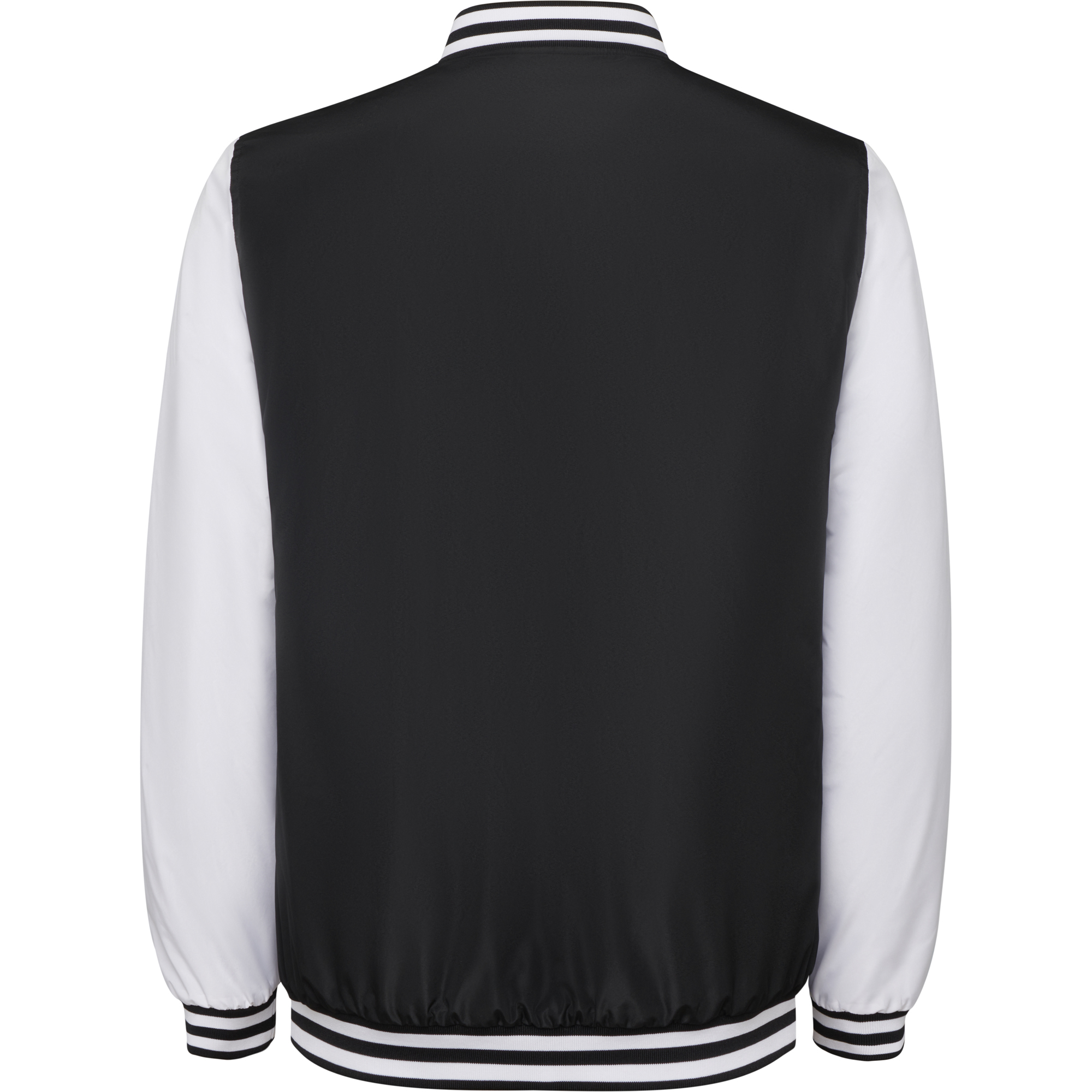 Chaqueta unisex ligeramente acolchada combinada con dos colores. Cuello, puños y bajo en rib 1×1, con dos líneas a contraste. Bolsillos laterales con cremallera. Interior forrado. Botones a presión con acabado de plástico a contraste. Acceso interior en pecho izquierdo y espalda para reprocesos.