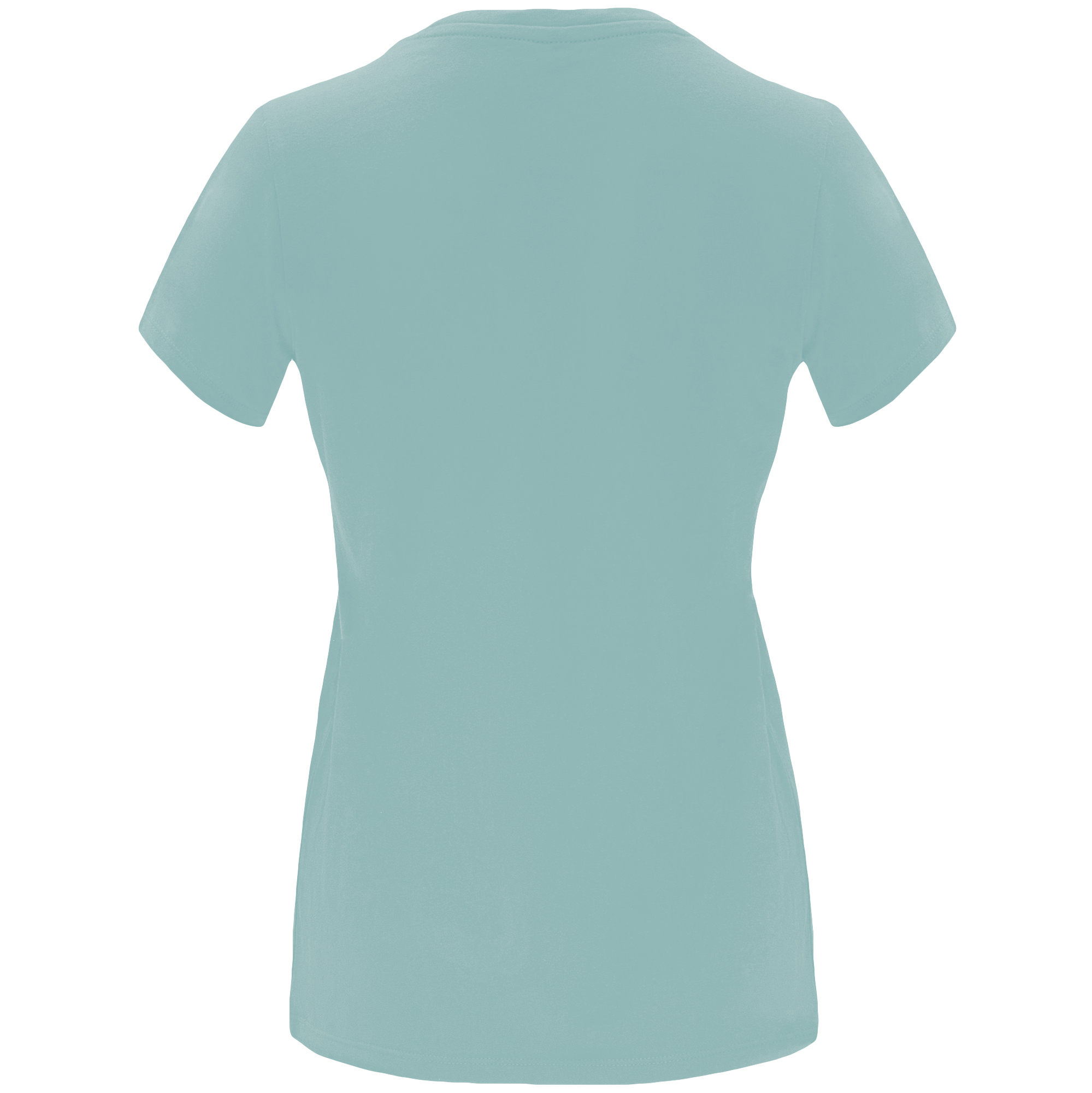 Camiseta de manga corta entallada. Cuello redondo en canalé 1×1 con cubre costuras interior. Costuras laterales.