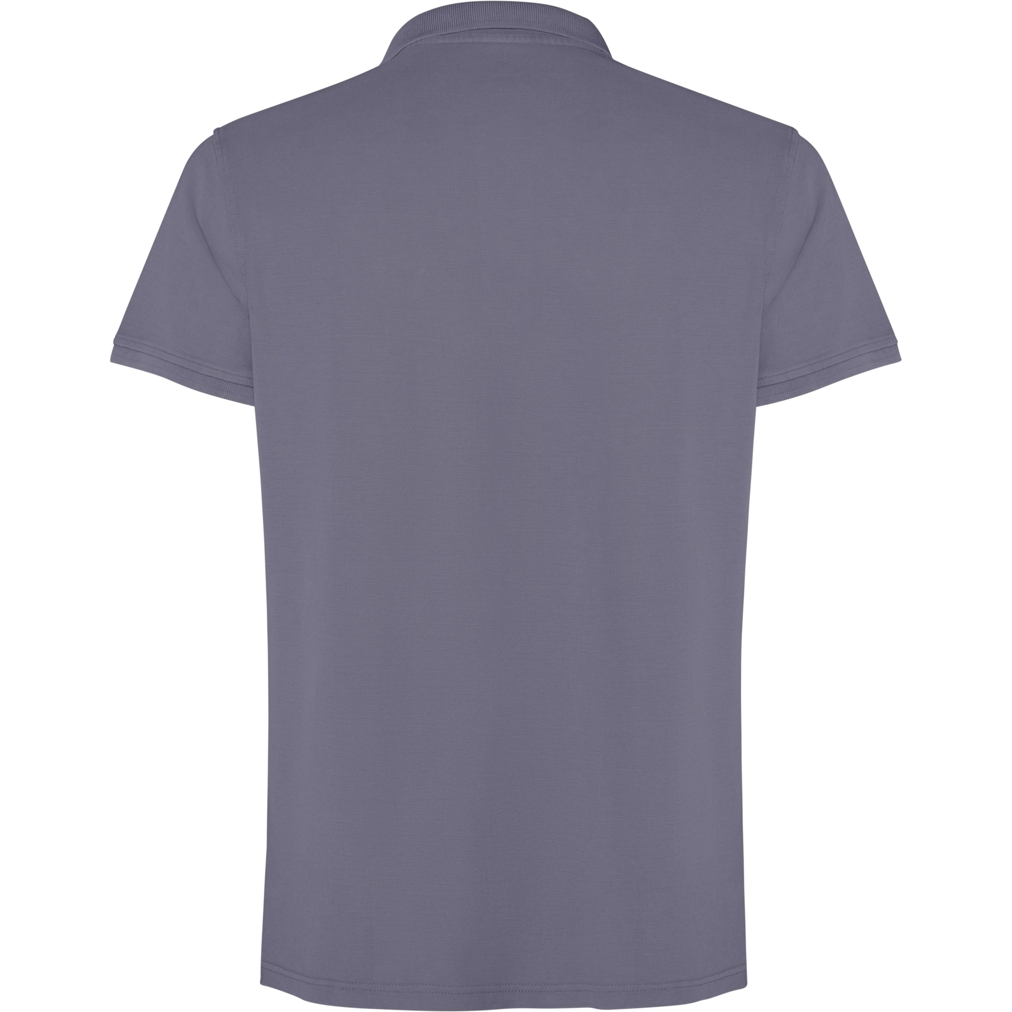 Polo de manga corta unisex, 100% algodón con acabado lavado ácido. Cuello y mangas en rib 1×1, con aperturas laterales. Cubrecosturas al tono. Tapeta con tres botones.