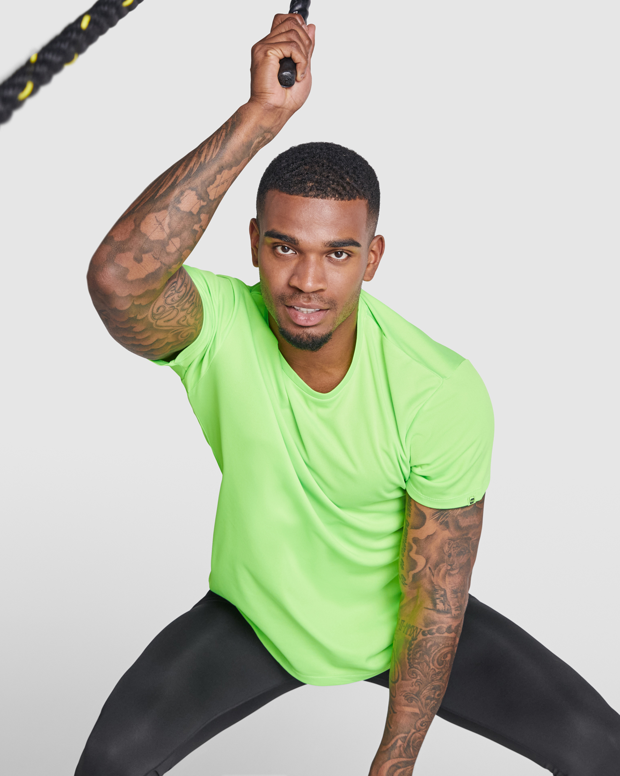 Composición: 50% Poliéster Reciclado / 50% Poliéster, Waffle Interlock. 135 g/m².
