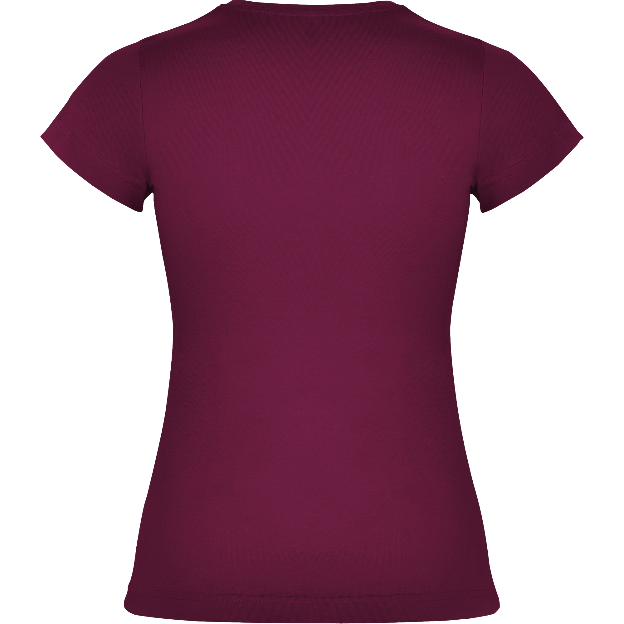 Camiseta de manga corta entallada. Cuello redondo de dos capas en canalé 1×1 con cubre costuras de hombro a hombro. Costuras laterales.
