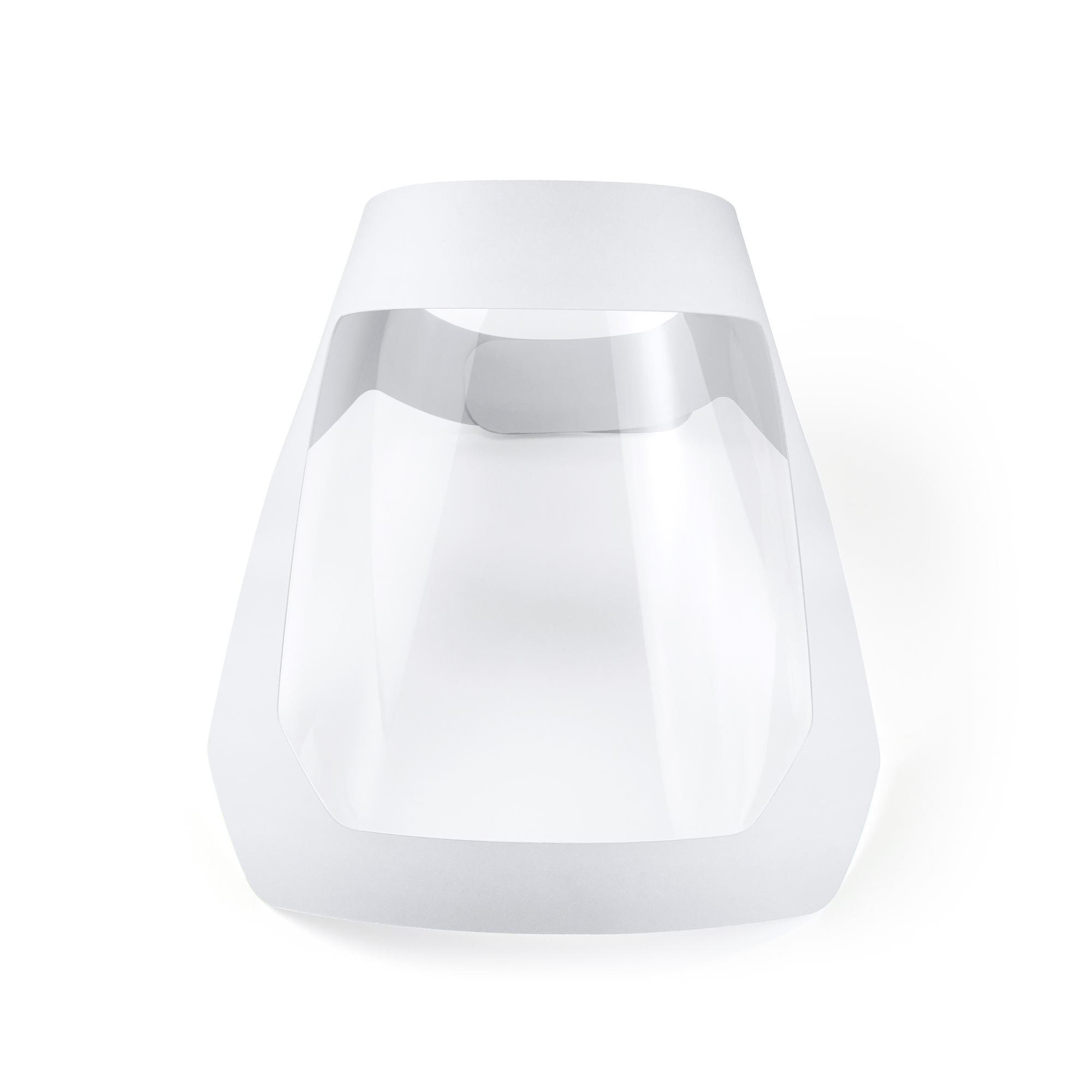 Pantalla facial reutilizable flexible y ligera. Realizada en cartón laminado blanco y PET. Fácil de personalizar. Cierre ajustable con velcro negro.Acolchado de goma espuma para un cómodo ajuste a la frente. Diseño contra salpicaduras.