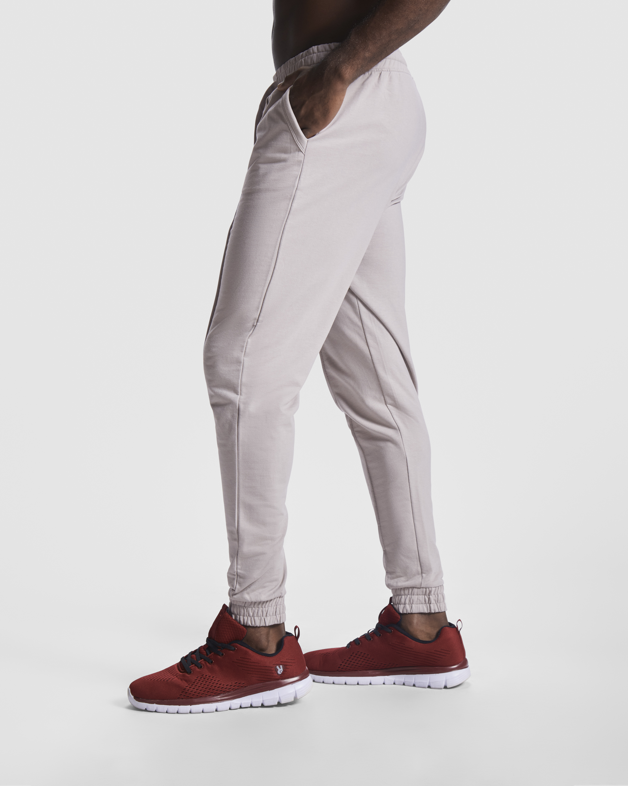 Pantalón largo unisex con puño en el bajo. Cinturilla elástica ajustable mediante cordones exteriores. Dos bolsillos laterales. Detalle de costura en relieve.