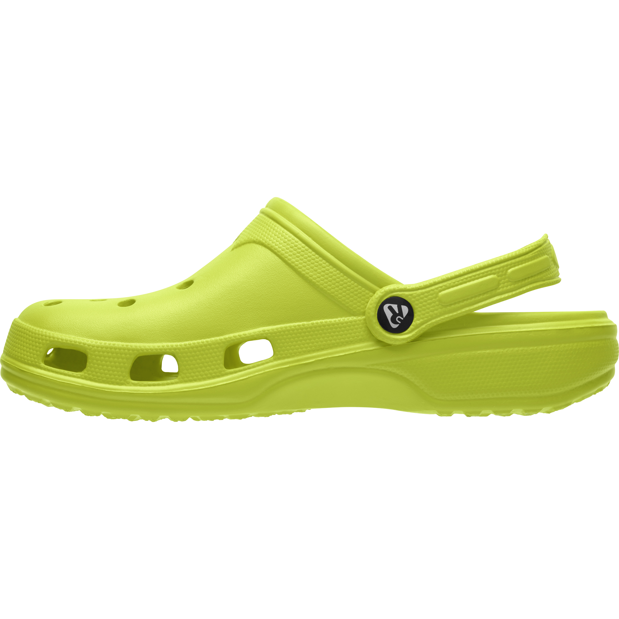 Zueco de máxima comodidad. Agujeros de ventilación y tira de sujeción de doble posición en el talón. Modelo multifuncional, para usar en tiempo libre y también ideal para personas que pasan muchas horas de pie, como trabajadores del sector alimentación, estética…