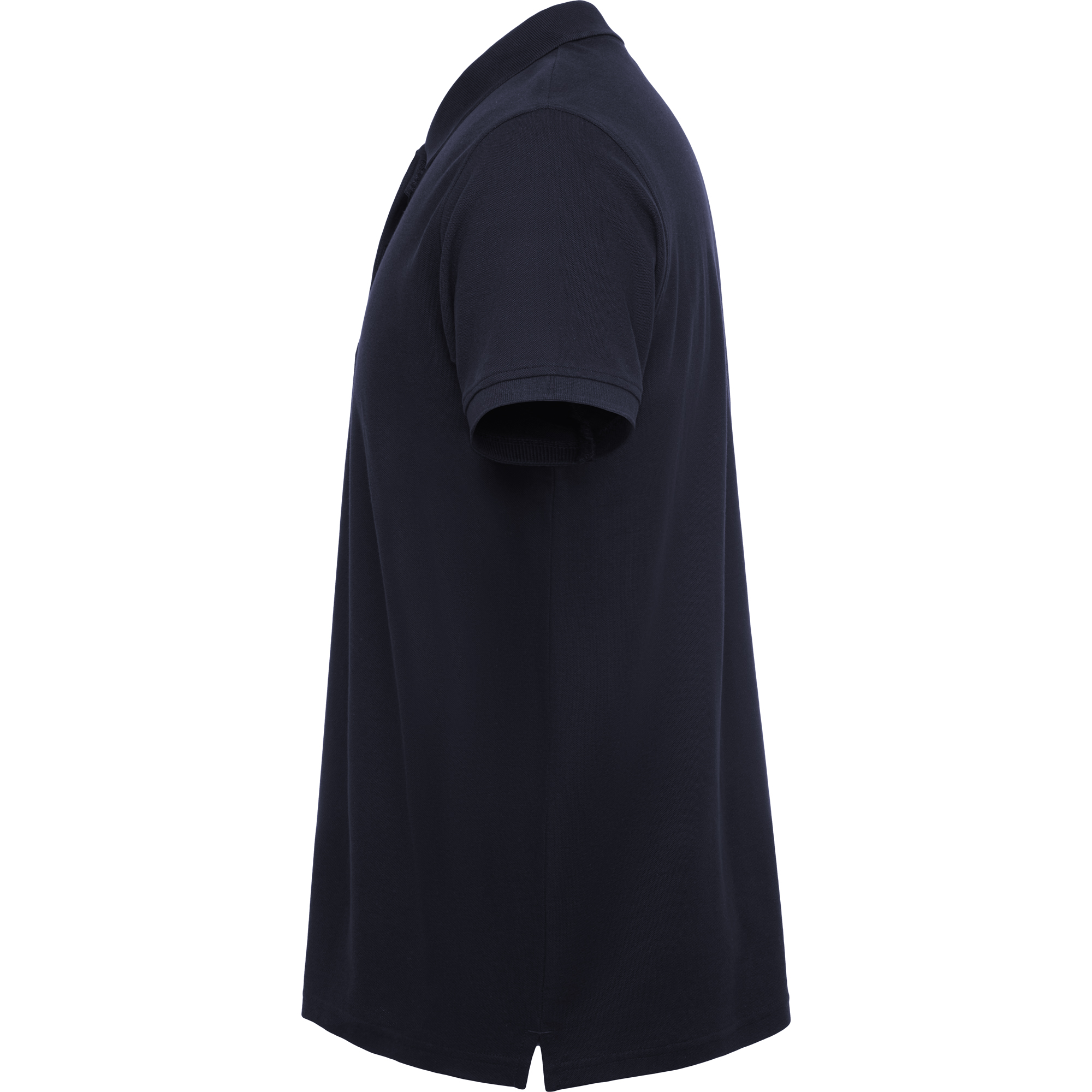 Polo de manga corta. · Cuello y ribete de manga en canalé 1×1. · Tapeta con cierre de velcro. Cubre costuras reforzado en cuello. · Aperturas laterales en el bajo.