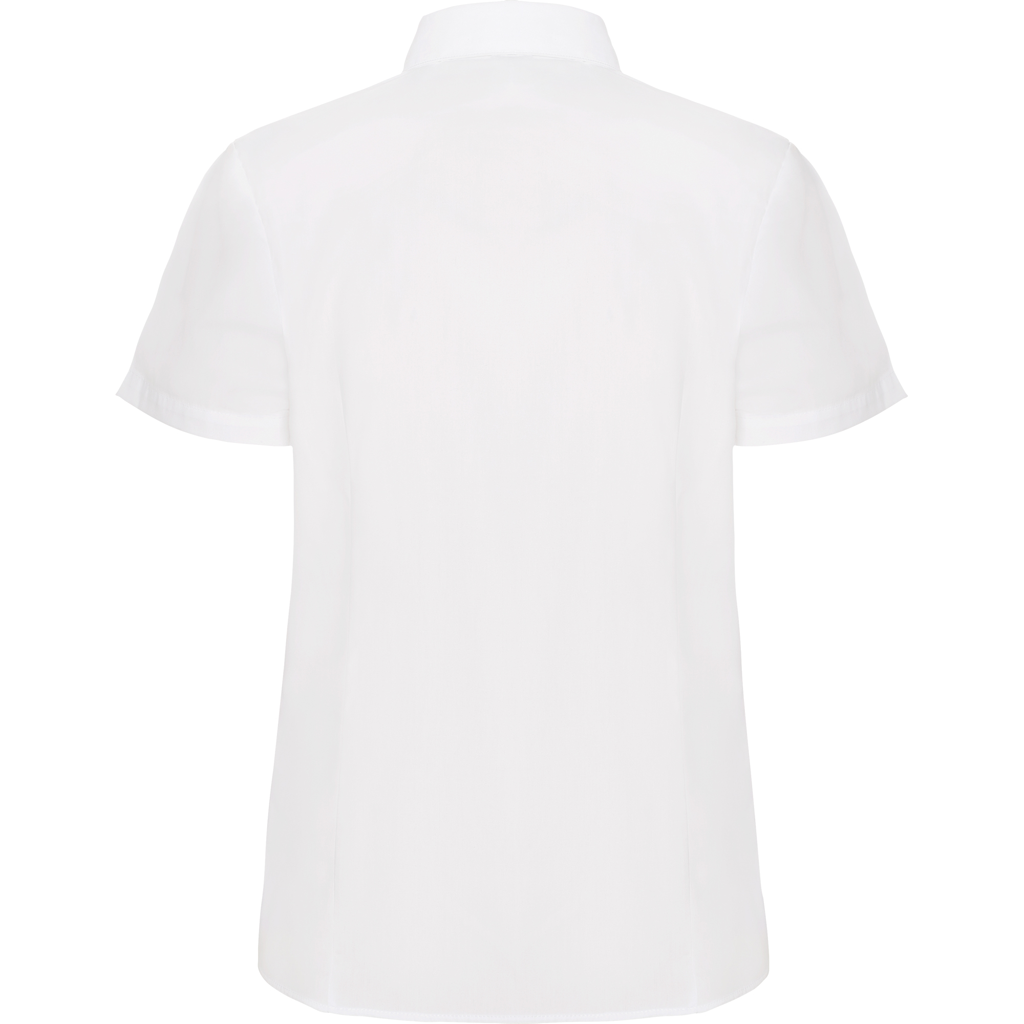 Camisa de manga corta entallada de mujer. · Pinzas en delantero y espalda. · Bolsillo frontal izquierdo y tapeta cubre botones. · Bajo redondeado. · Cuidado fácil.