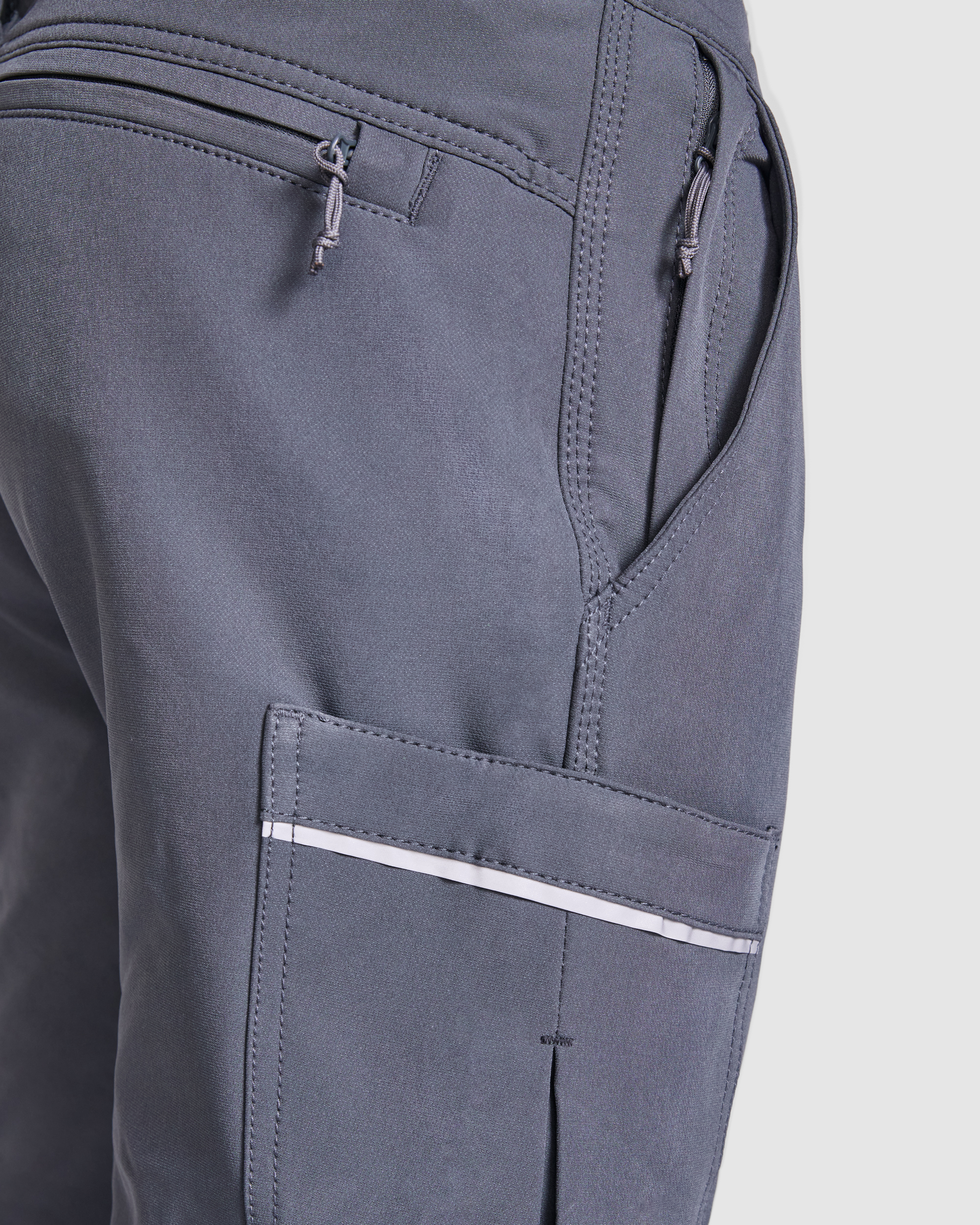 Pantalón laboral stretch multibolsillos. · Cinturilla con dos trabillas delanteras y tres traseras con la trabilla central de ancho especial. · Cierre con cremallera y botón a presión gomado. · Dos bolsillos delanteros de corte clásico, uno de ellos con bolsillo lateral y cremallera. · Bolsillo cargo en lateral izquierdo con tapeta, cinta reflectante y cierre de velcro. · Bolsillo plastrón en lateral derecho con cinta reflectante y cierre de velcro. · Bolsillo para rodilleras con tapeta fija, cinta reflectante y cierre de velcro. · Trabilla en lado izquierdo para herramientas. · Canesú trasero con dos bolsillos con vivos y cremalleras invertidas. · Bajo con resfuerzo y cinta refectante en la parte posterior. · Triple costura de refuerzo en lateral y entrepierna con hilo a tono. · Refuerzo en la parte trasera de la entrepierna.